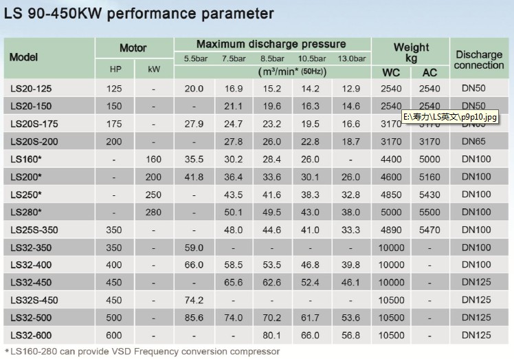 The Sullair brand-new LS20-125 LS20-150 LS20S-175 LS20S-200 LS90-110 LS25S-350,LS32-350,LS32-350,LS32-400,LS32-450,LS32S-450,LS32-500,LS32-600 Series,developed by Sullair to meet the needs of the market, offer upgrades on LS20-125/150. This series feature an integral box structure, a high-efficiency motor, and high quality parts, such as the US-designed air end, combined with additional options for built-in components for heat recovery and built-in variable speed drive, to improve energy efficiency and reduce noise.